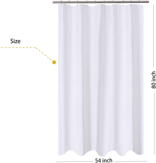 Fabric Shower Curtain Liner Extra Long Stall Size 54 Width by 80 Length Inches, Hotel Quality, Washable, White Bathroom Curtains with Grommets, 54X80