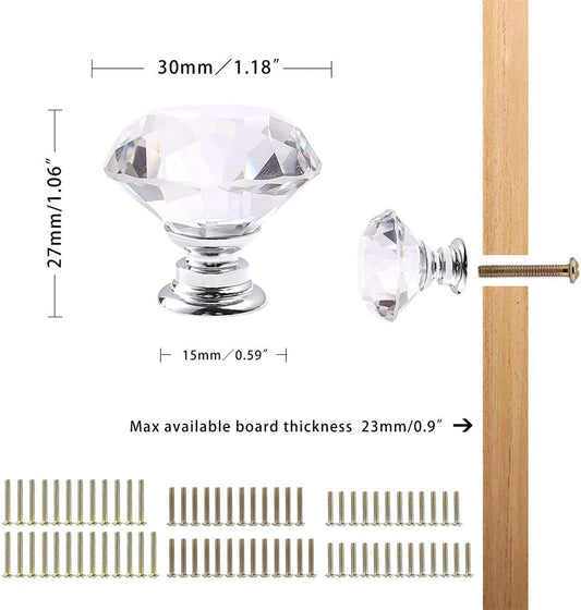 25 PCS Diamond Crystal Glass Pull Handle Cabinet Knobs Cupboard Drawers Cabinet Dresser Bookcase Wardrobe (30Mm, Transparent)