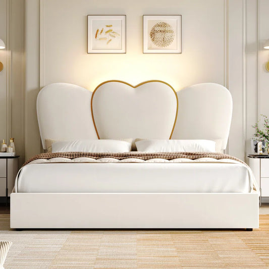 Kraus Velvet Upholstered Platform Storage Bed with LED Lights